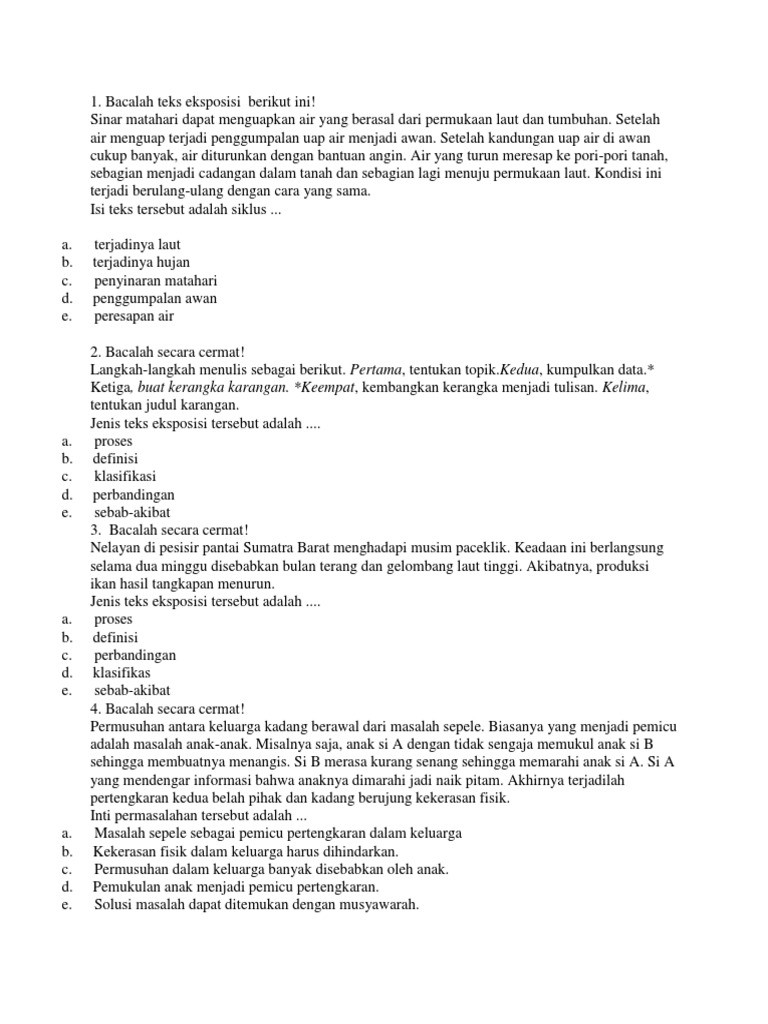 Bacalah teks eksposisi berikut ini! Maka jawaban yang tepat adalah pilihan a. Kumpulan soal bahasa indonesia sma kurikulum 2013. Karangan atau paragraf yang bersifat eksposisi disebut ekspositiris. Diposkan pada februari 18, 2018 by sasya27. Jenis teks eksposisi tersebut adalah. Teks eksposisi → teks yang bersifat memaparkan atau menjelaskan suatu informasi, contoh : Tesis buatlah ringkasan teks eksplanasi peristiwa alam dari soal nomor (25) 44. 37 full pdf related to this paper. Bacalah teks eksposisi berikut ini! Materi lengkap teks eksposisi : Jenis teks eksposisi tersebut adalah. Pengertian terks eksposisi, jenis teks eksposisi, struktur teks eksposisi dan contoh teks eksposisi itu sendiri.